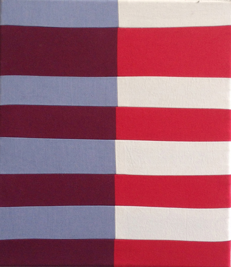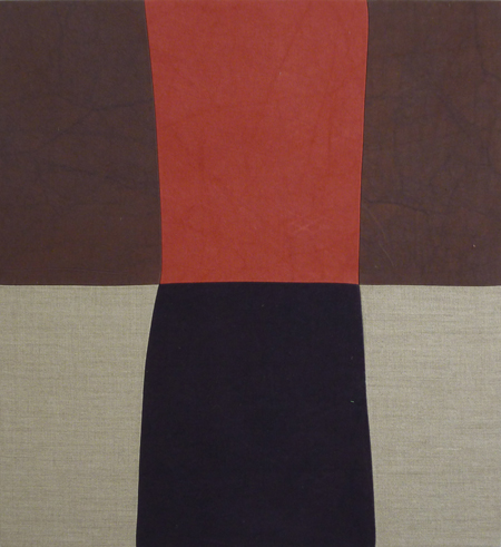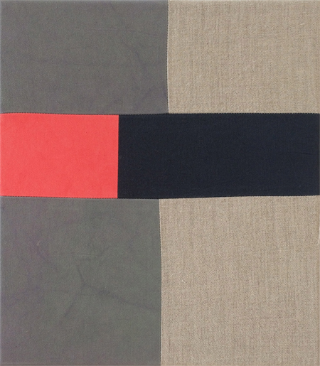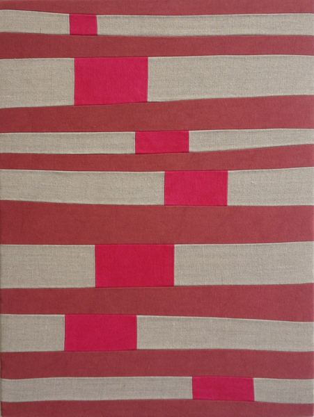 Red Corner50x45cm; dyed cotton, acrylic, canvas, linen, stitched 2014